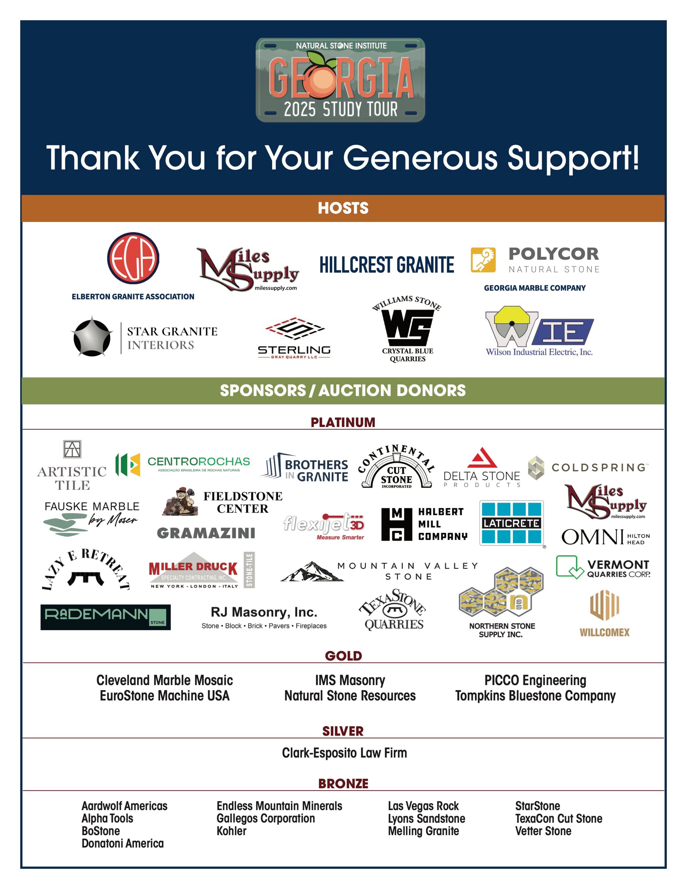 The LIVE auction was held September 10, 2025 in Athens, GA during the study tour. Over $130,000 was raised for Natural Stone Institute and Natural Stone Foundation initiatives.